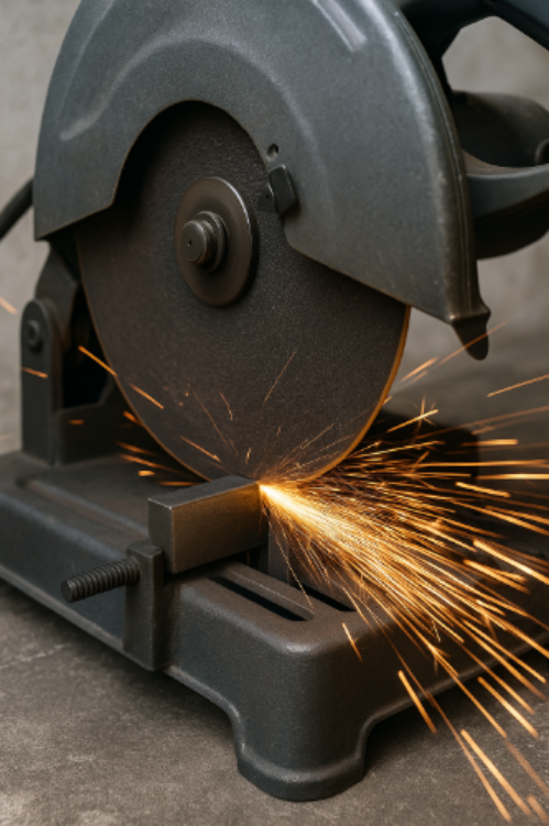 연마 톱이 생성됩니다. 스파크, 열, 날아다니는 잔해물 , 안전 예방 조치가 필수적입니다.
