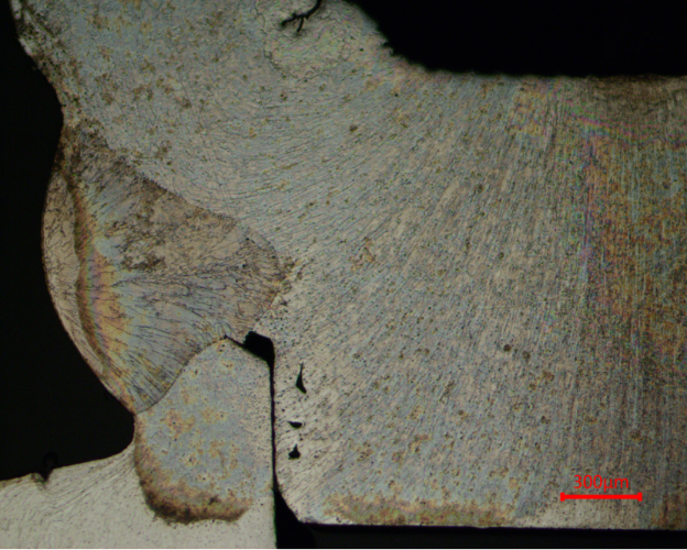 알루미늄 합금 용접 샘플은 부식 및 세척에 노출된 후 레인보우 필름 현상을 나타냈습니다. 사진은 알루미늄 합금 용접 샘플 레인보우 필름으로 진공 함침 후 샘플 표면을 다시 준비하여 기공을 채웁니다.